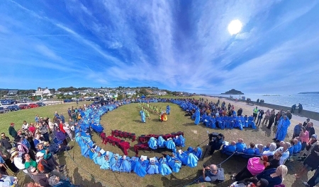 The Gorsedh Kernow 2025, the Cornish Gorsedh, was held on a windy Folly Field at Marazion overlooking Mounts Bay and St Michael’s Mount. This year Martin Eddy, Chairman of St Neot Local Historians was made a bard. His citation stated it was for seeking new ideas to improve his community in Kernow, for the good of others. He was given the bardic name Spyrys an Derrow, Spirit of the Oak.