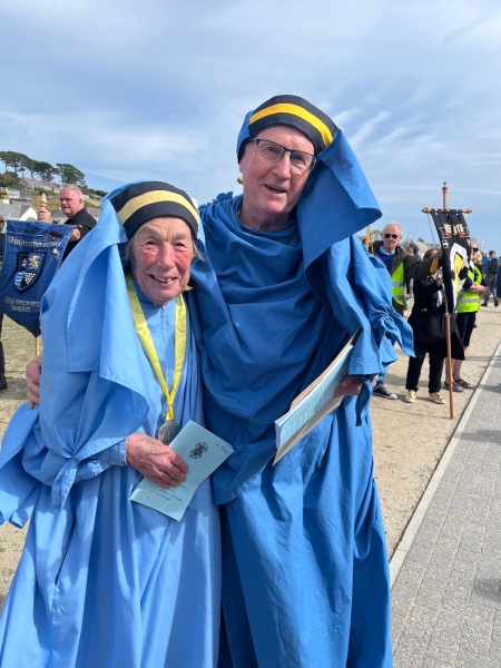 Gorsedh Kernow was established with the aim of celebrating and promoting Cornwall’s distinctive Celtic culture. With blue skies, blue seas and blue-robed bards it was a beautiful day. Pictured is Martin with St Neot Local Historians President Jill Thomas.