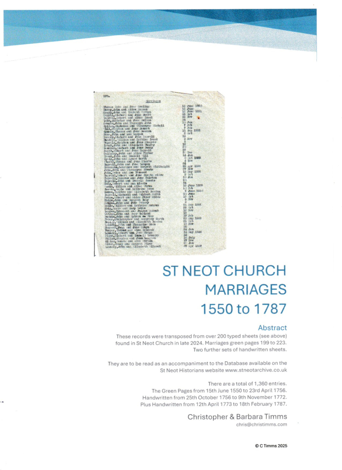 St Neot Church Databases and supplementary information.