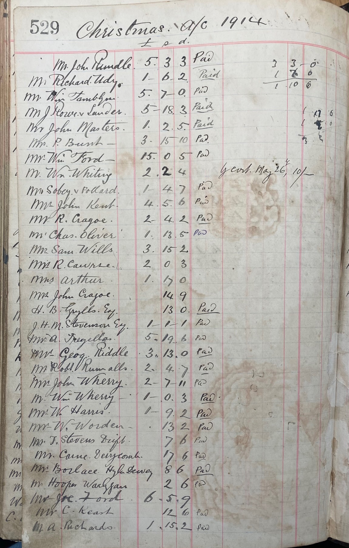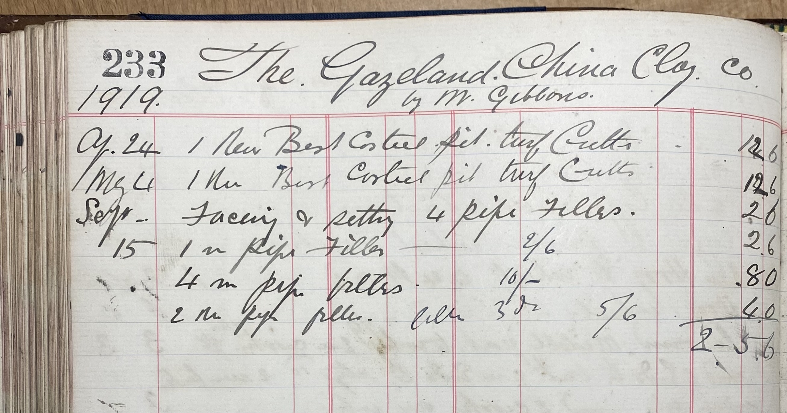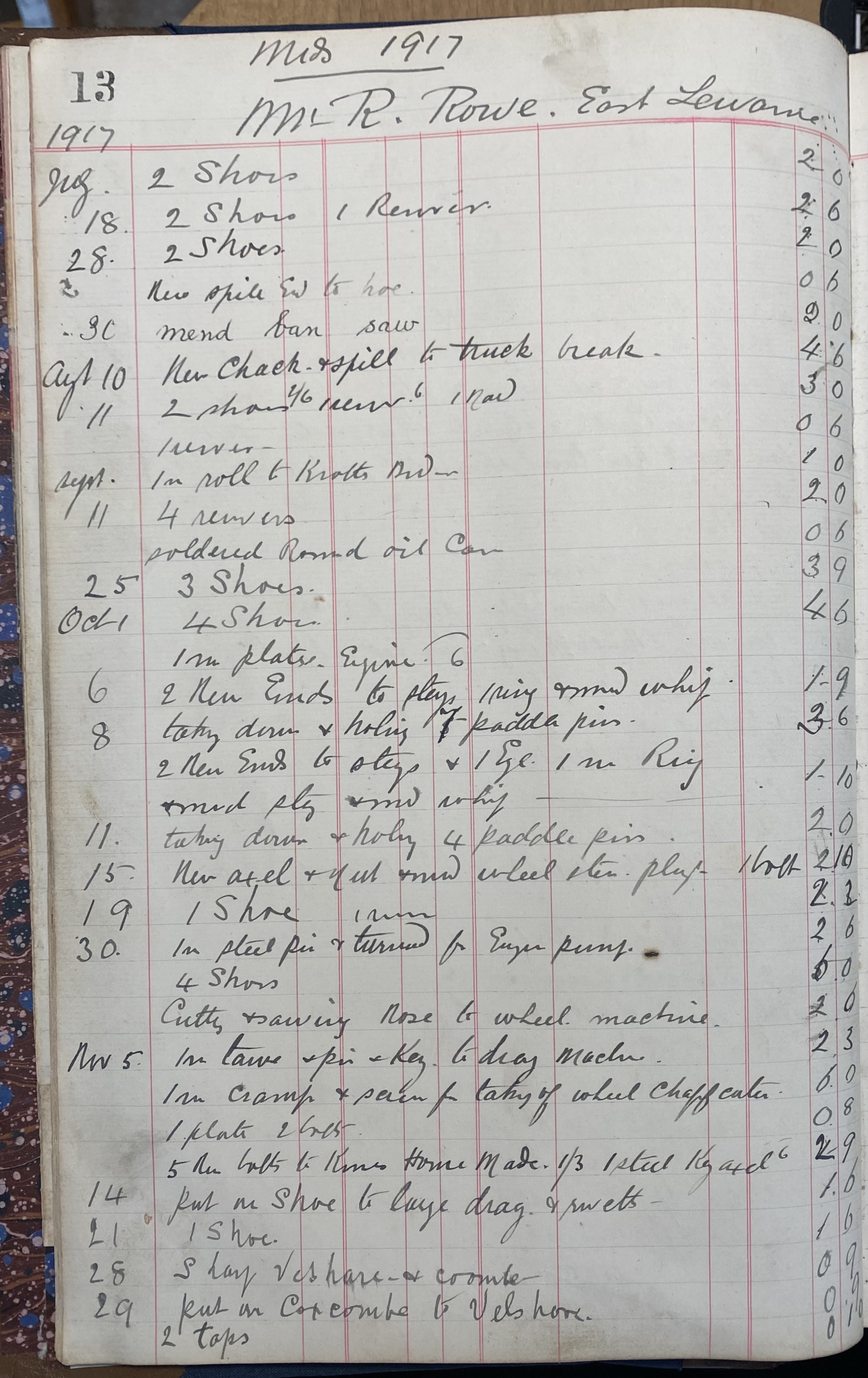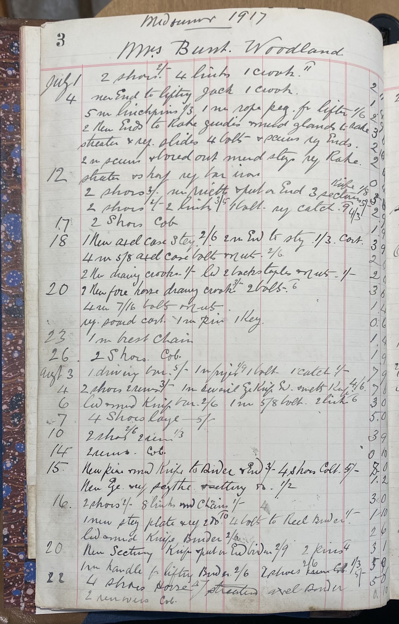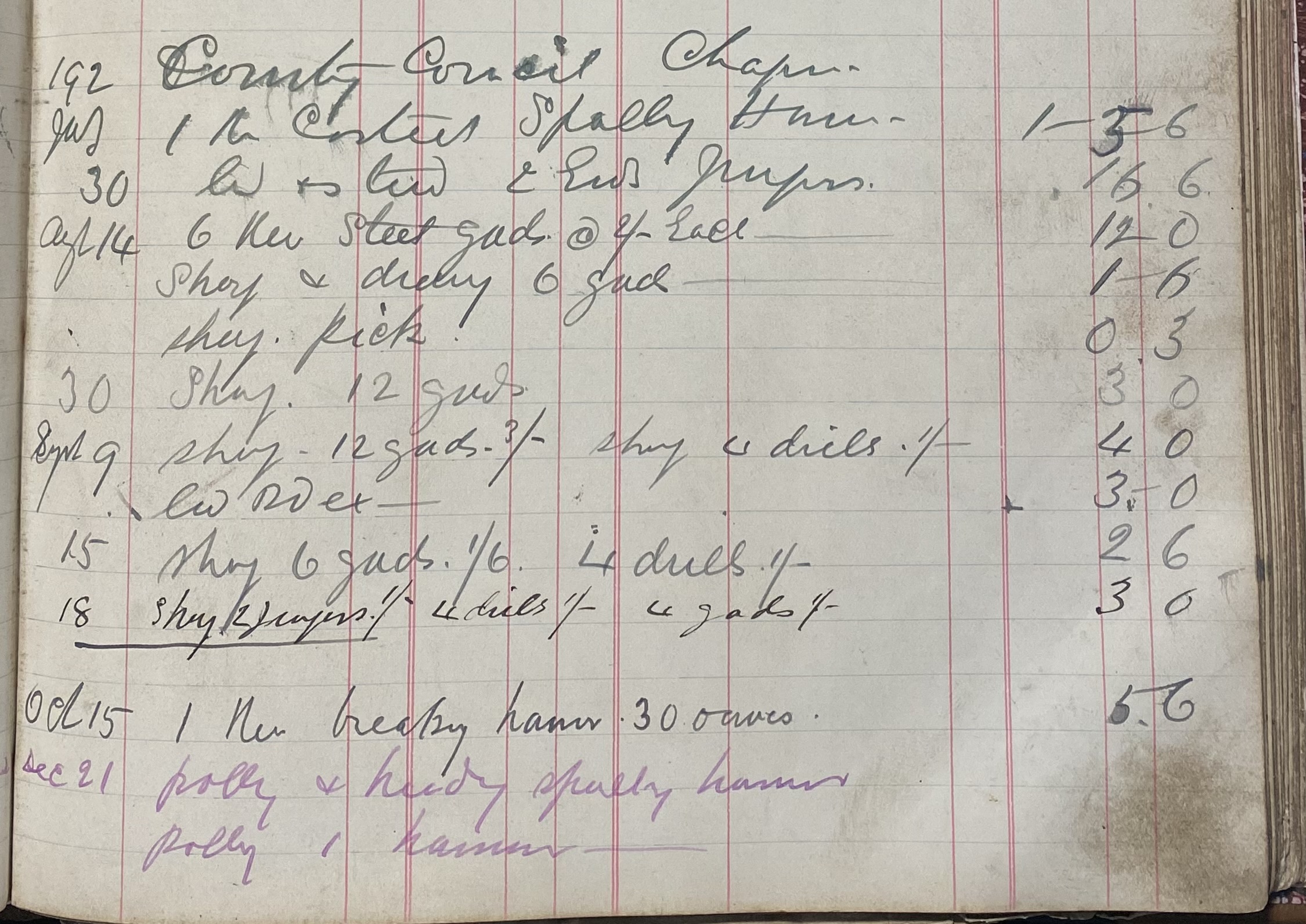 This large Blacksmith's Ledger records accounting and work carried out by the Kent Blacksmith from 1914 to 1925 covering work undertaken during the First World War and into the mid 1920's.