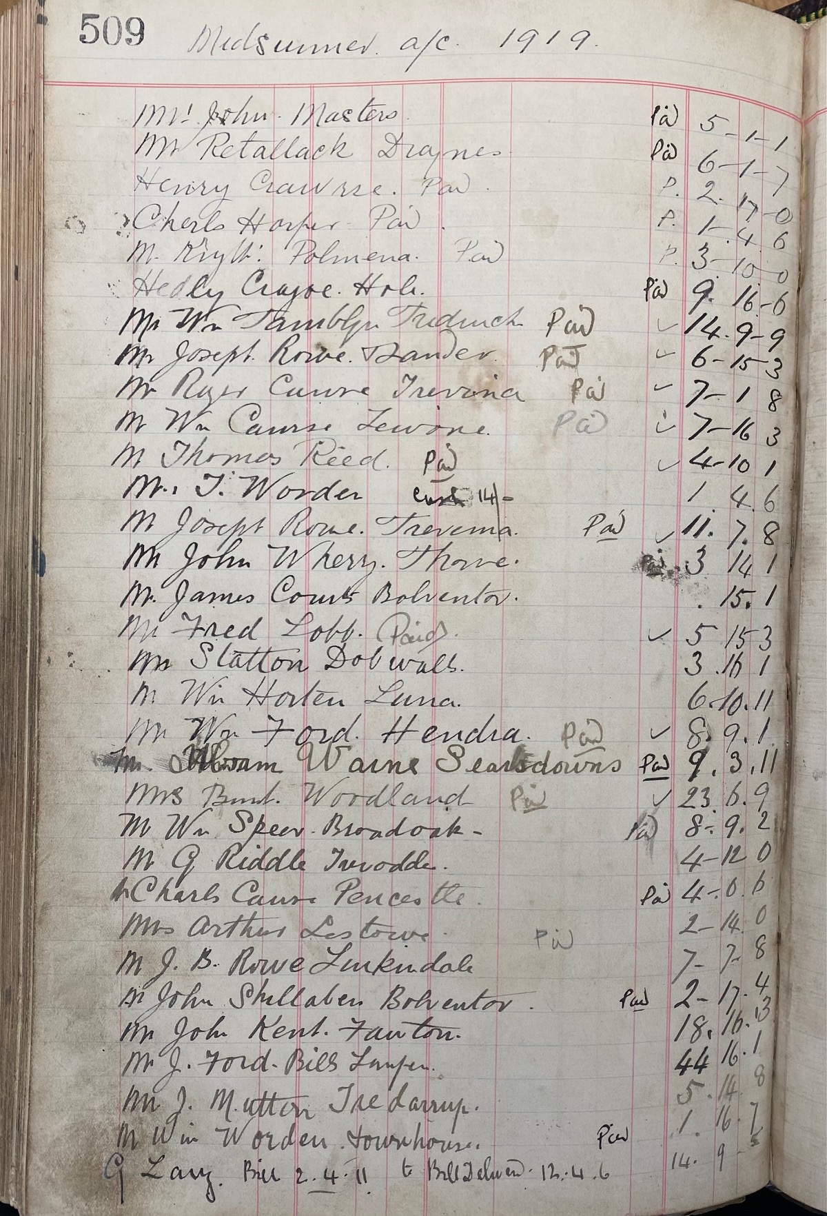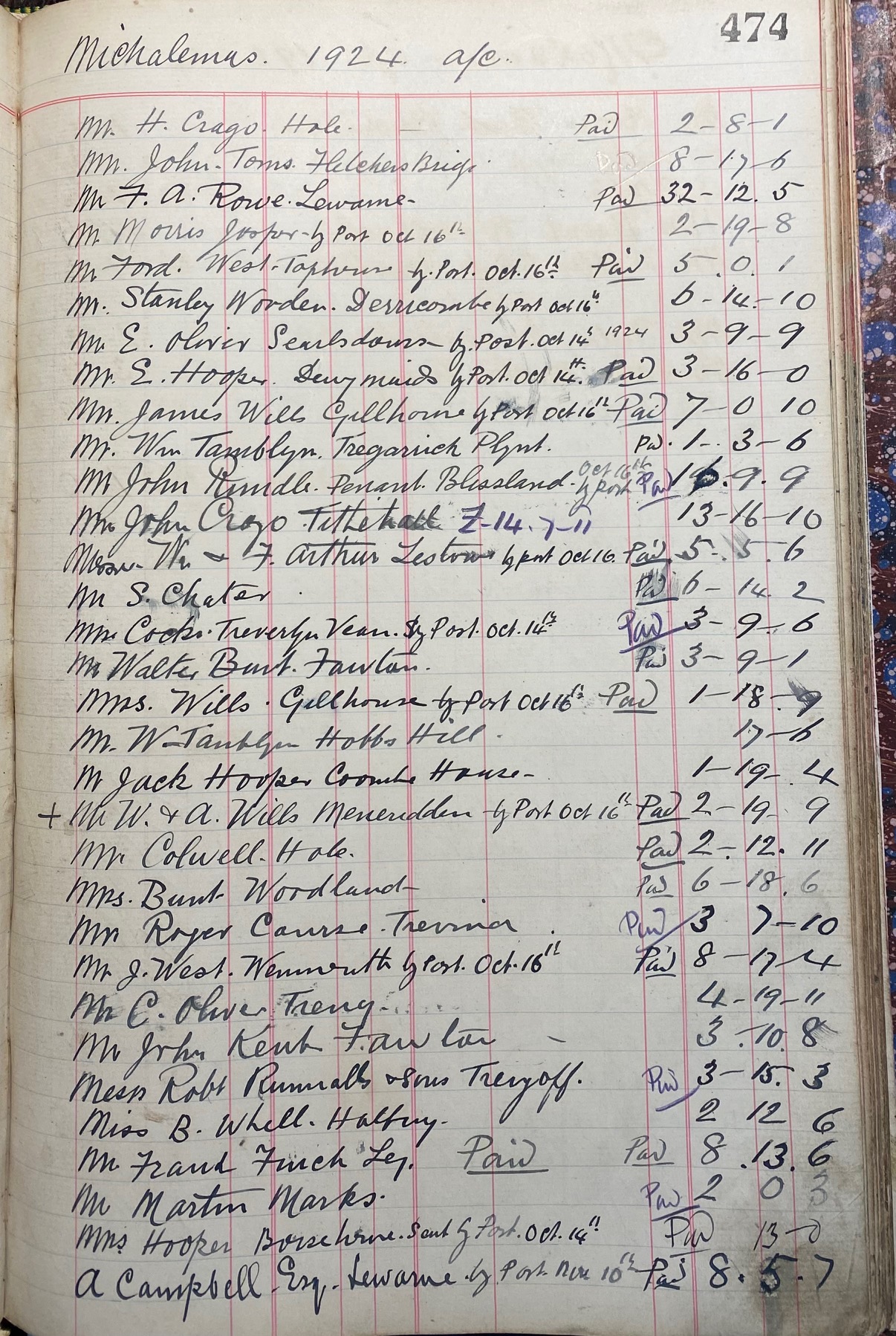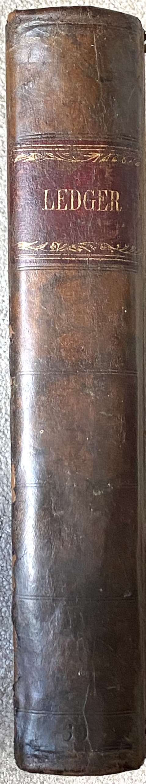 This ledger was in a very sorry state when we inherited it, the back cover was delaminating. We have since had a book binder work on it, it now looks superb whist retaining its authenticity and originality. It's now ready to last another century!