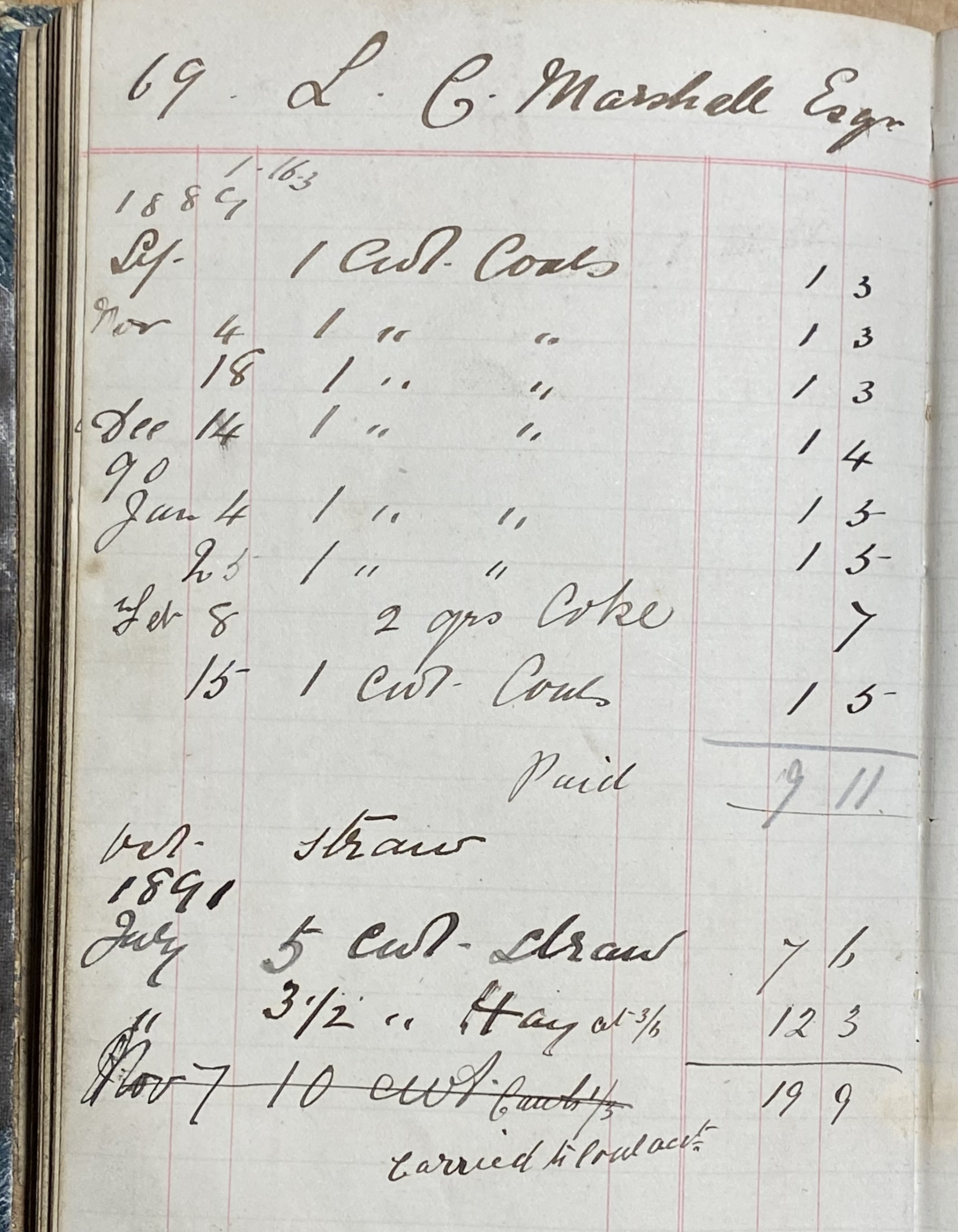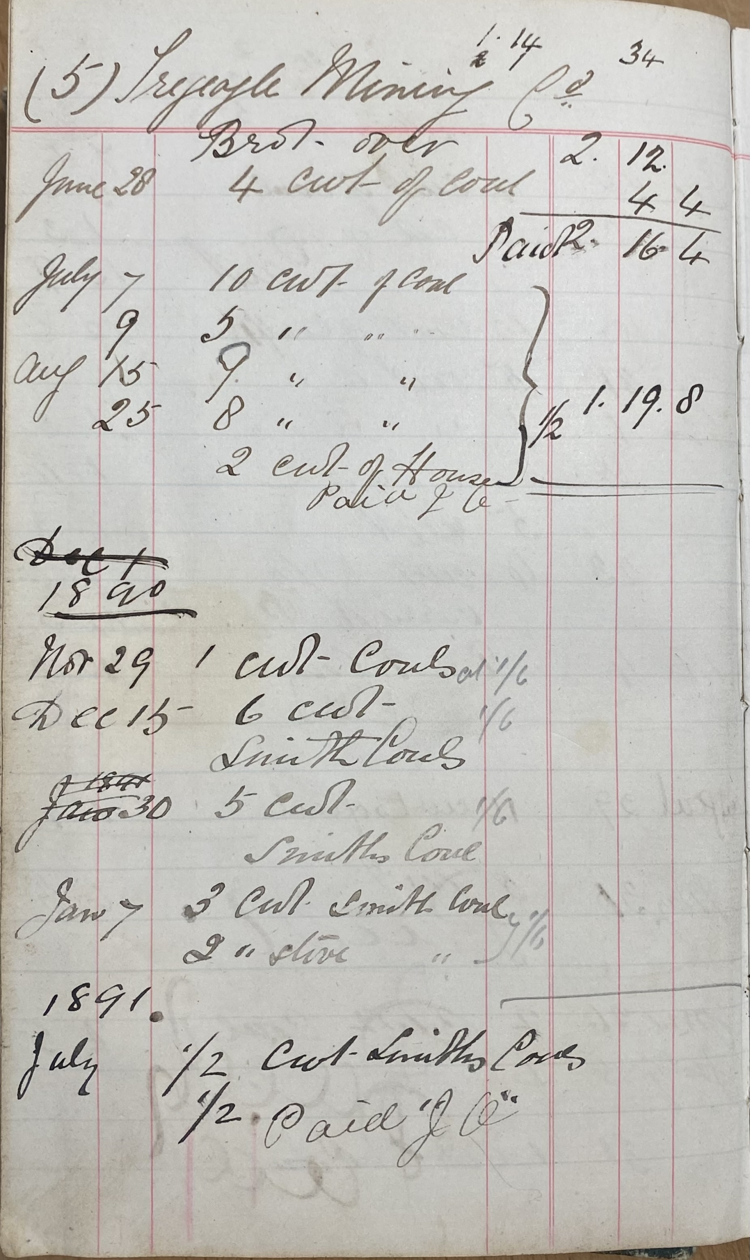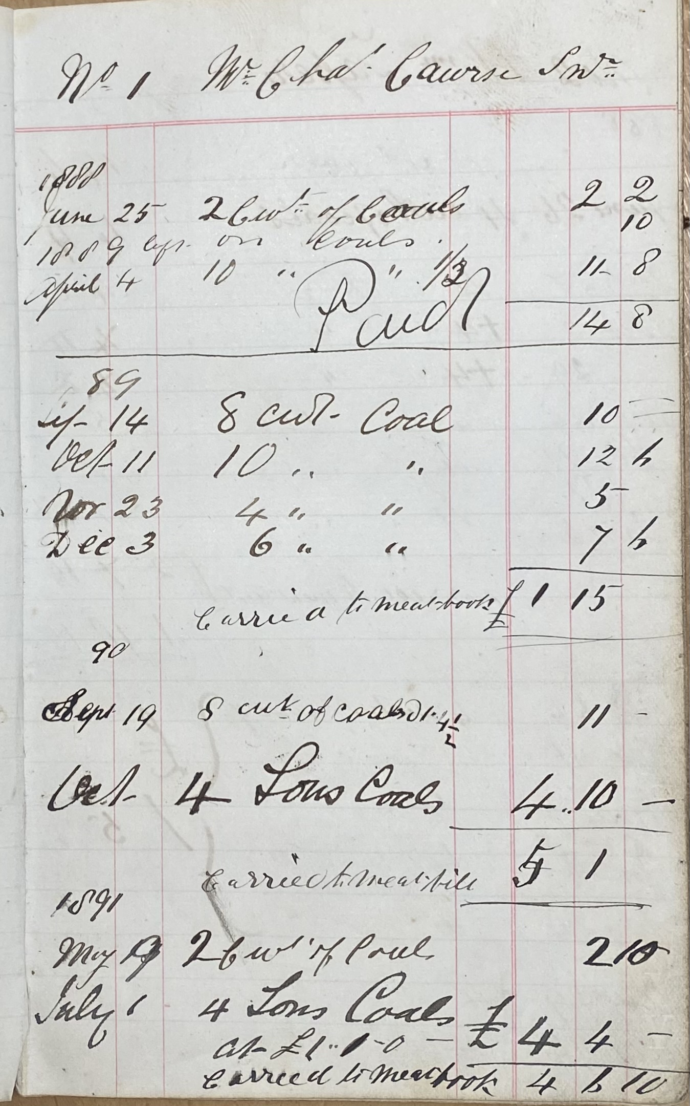Coal Book 1888 to 1891