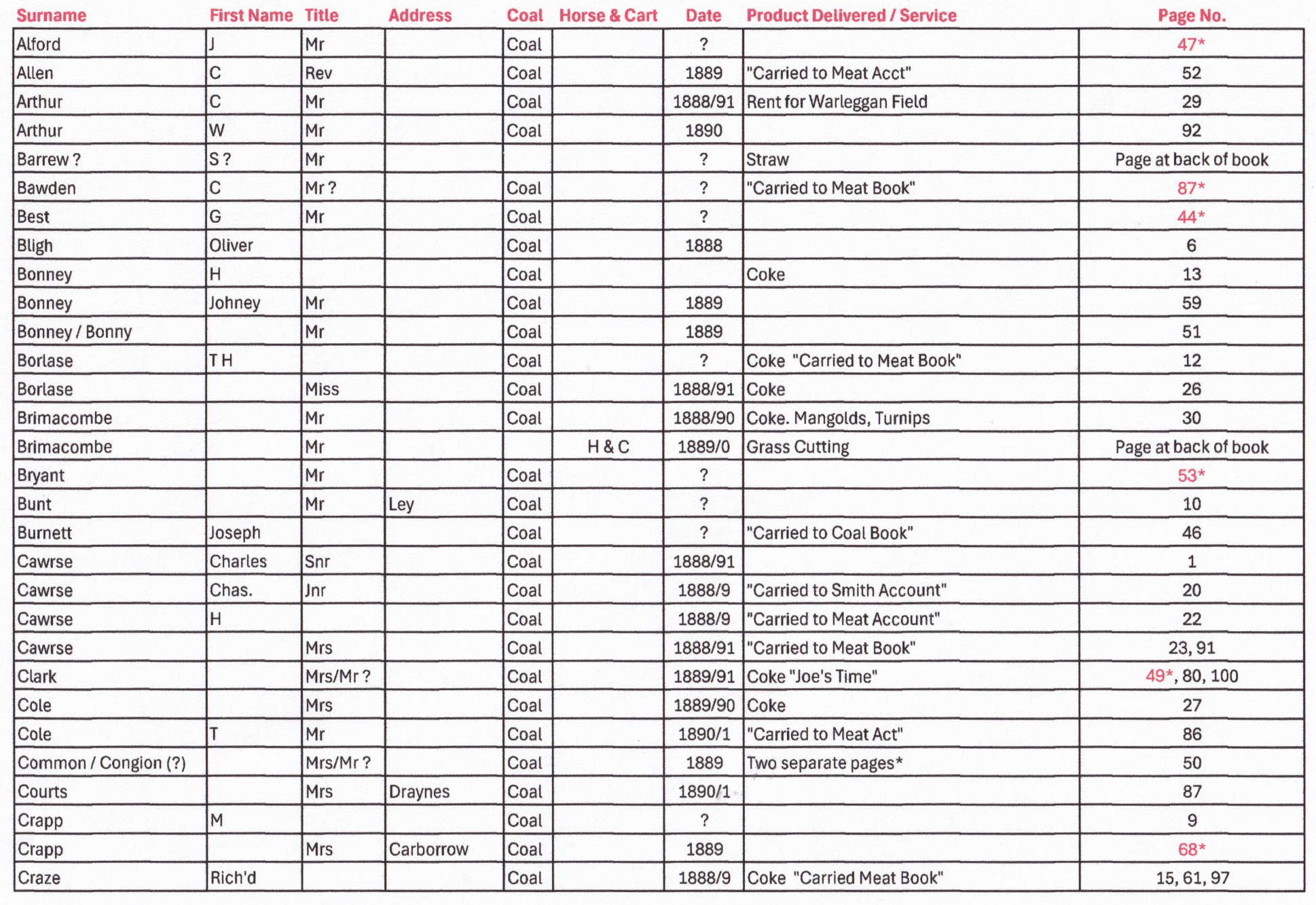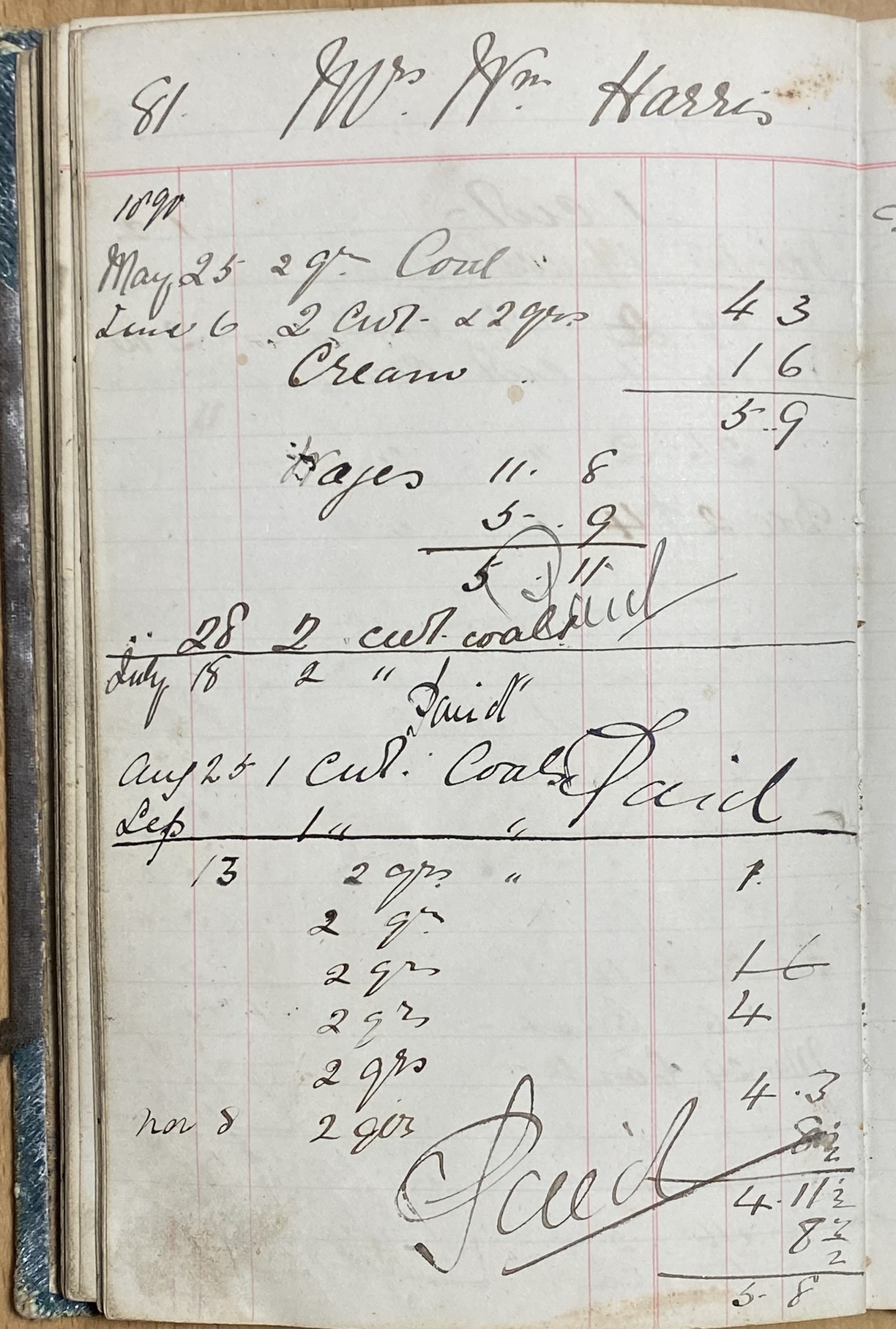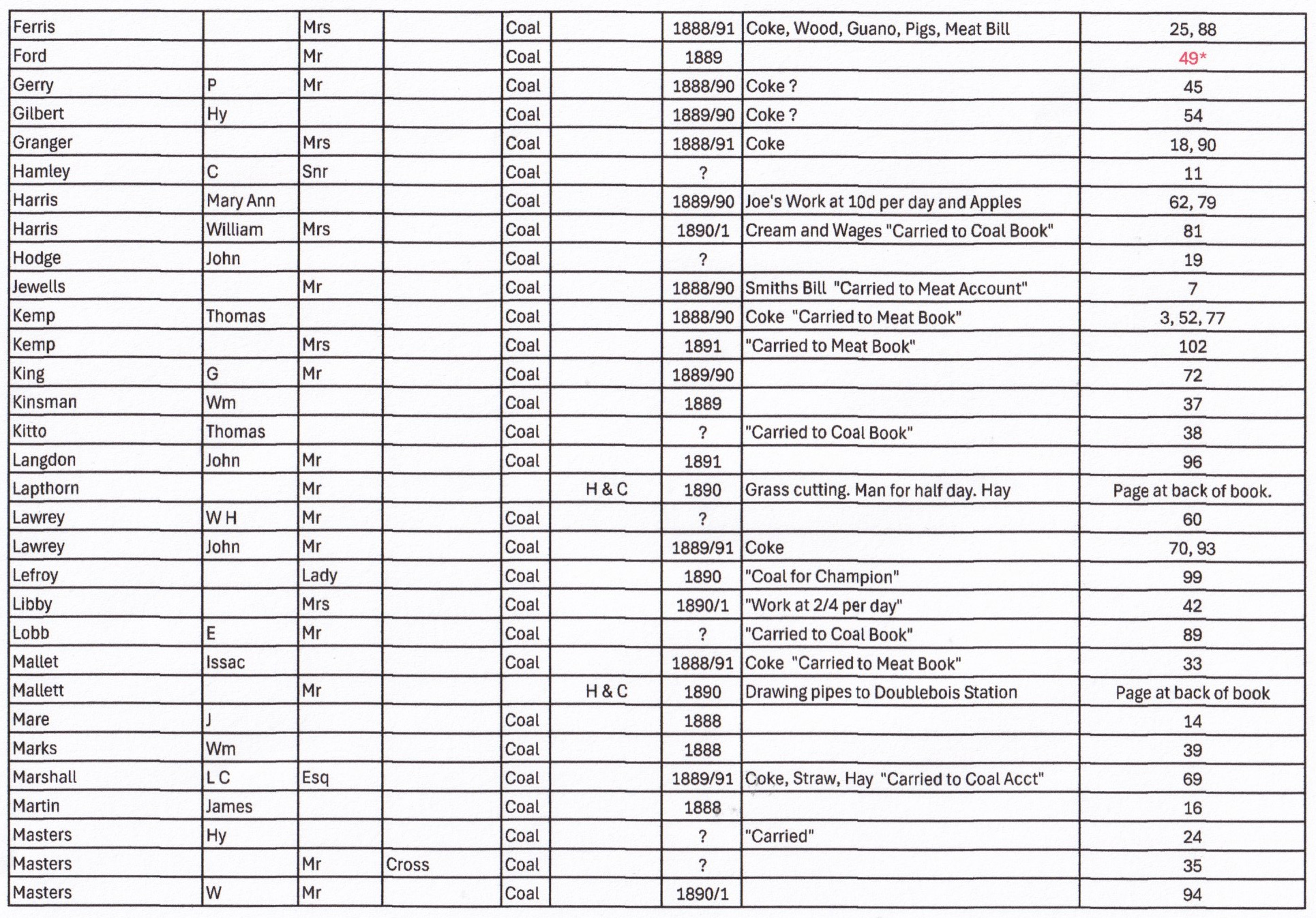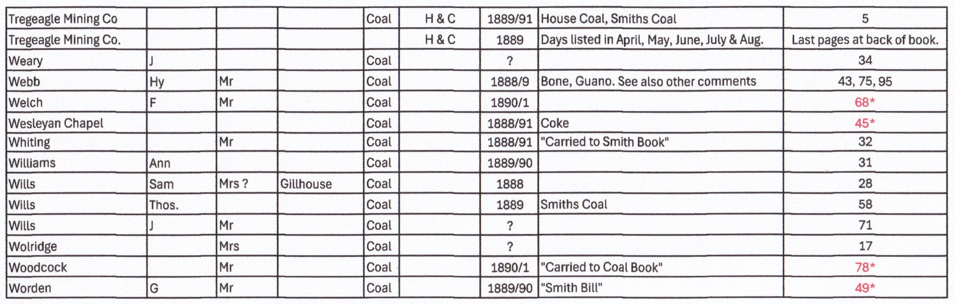 Coal Book 1888 to 1891