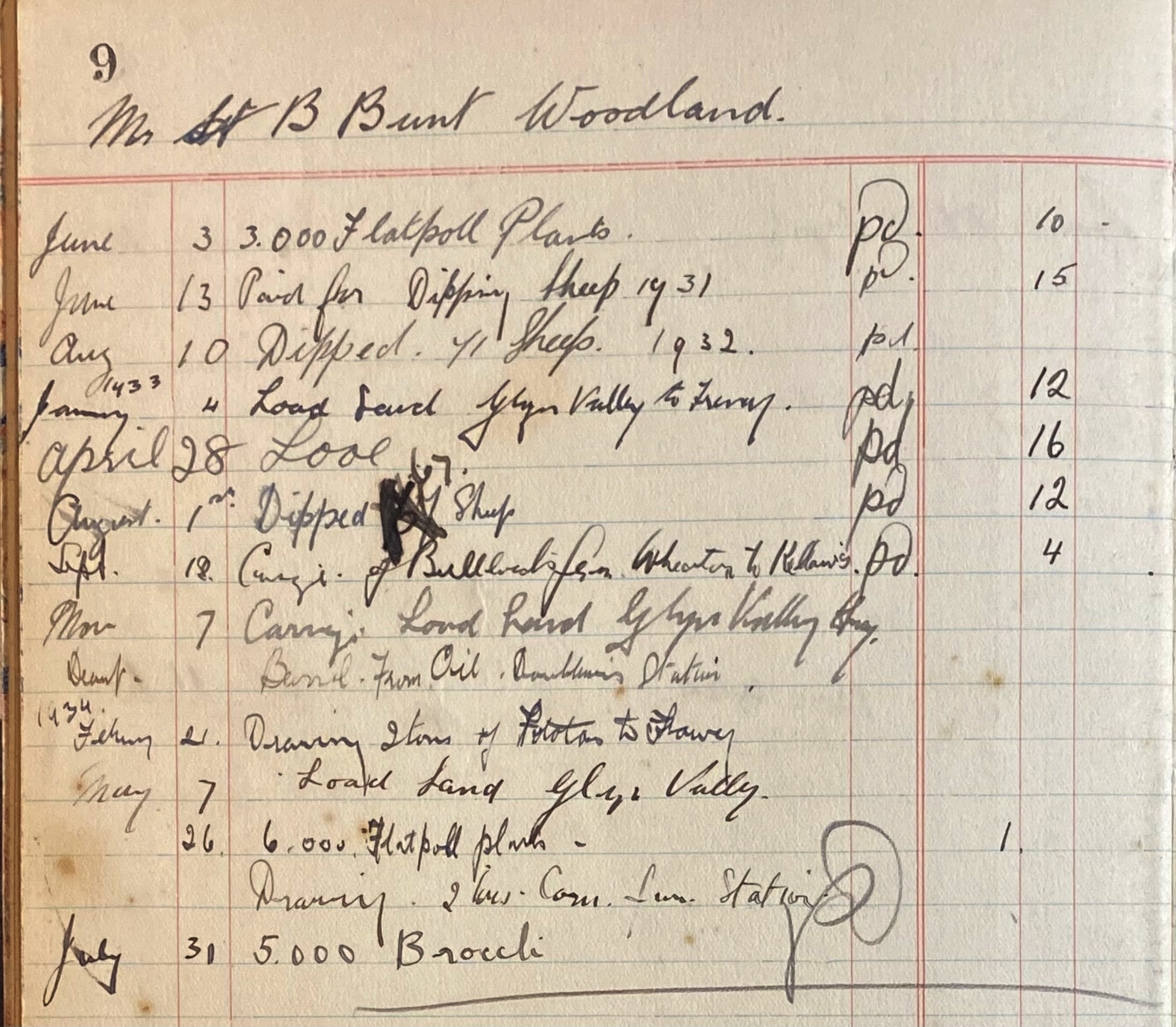 “Bull to Cow” and “Pig to Sow” are entered It would appear that the Ollivers supplied many different types of plants and delivered them to the Farms and Smallholdings growing them.