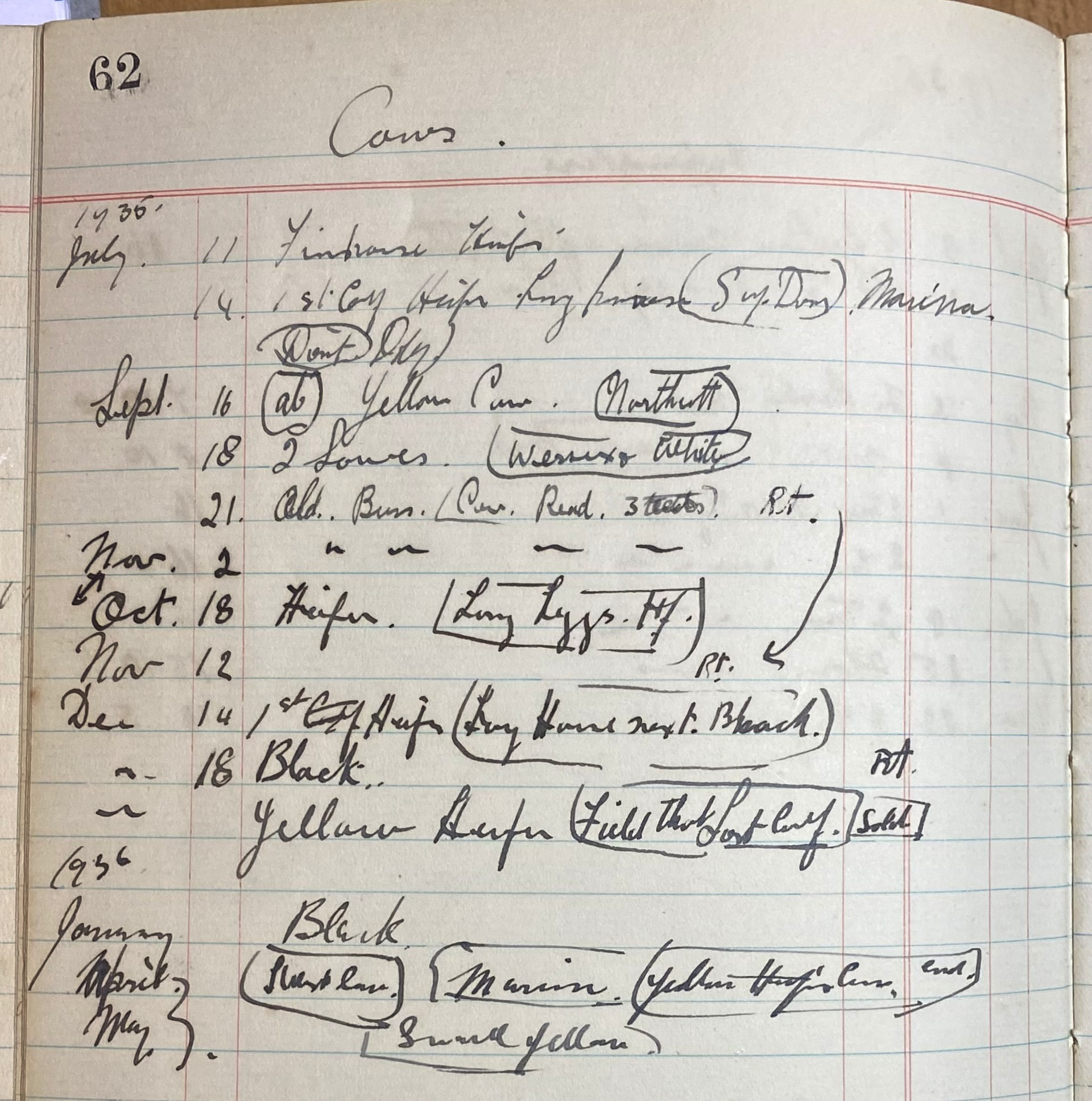This ledger covers the period from 1925 to 1946 and includes transactions of Animals, mostly Cows & Bulls and Pigs.