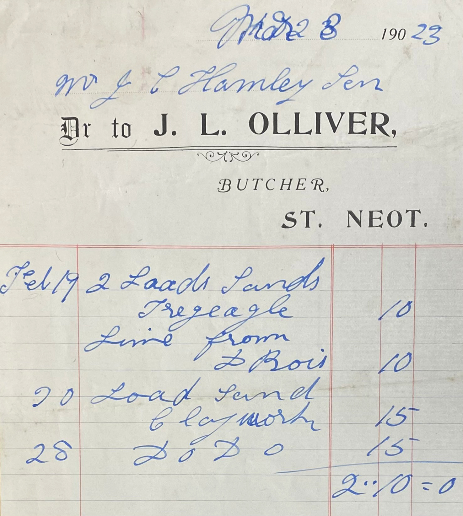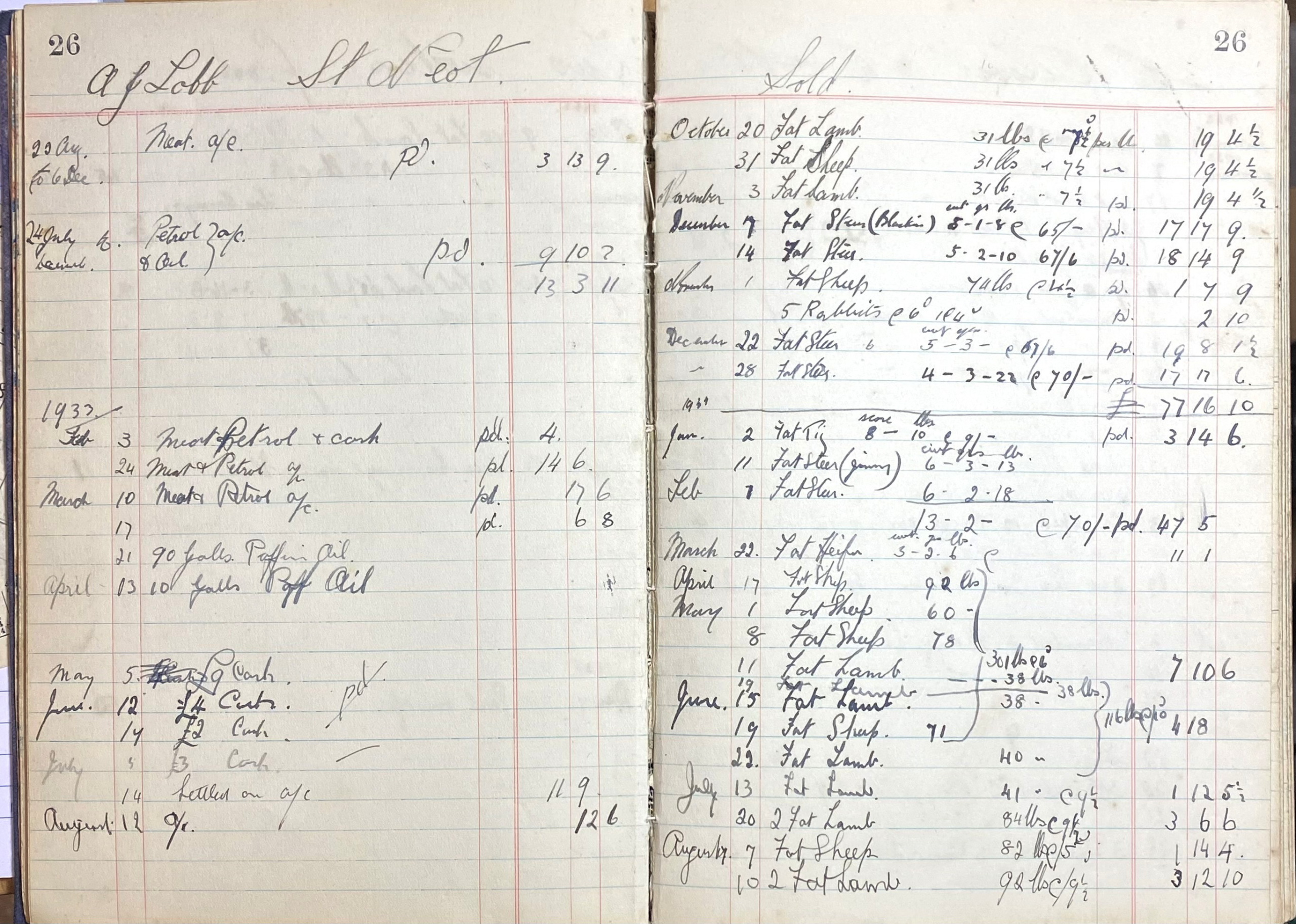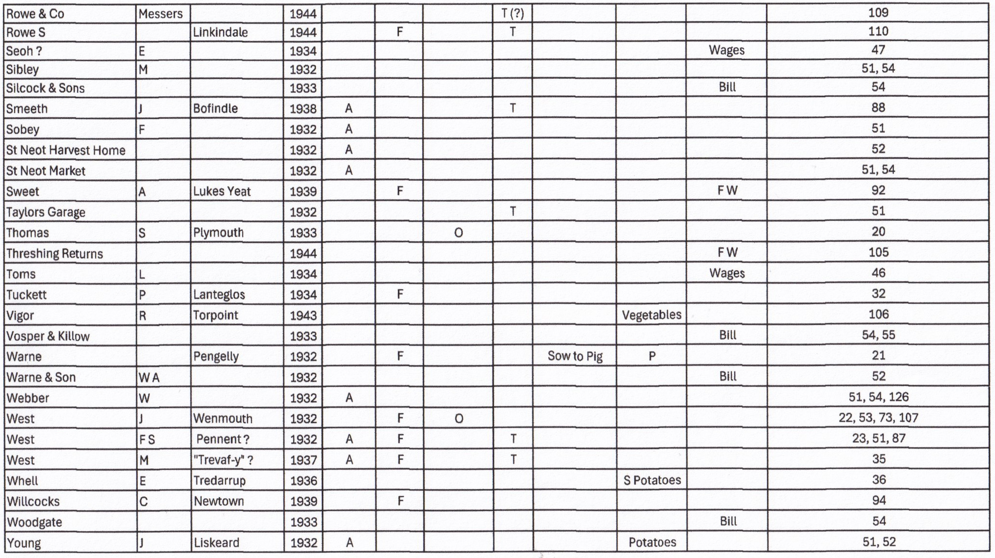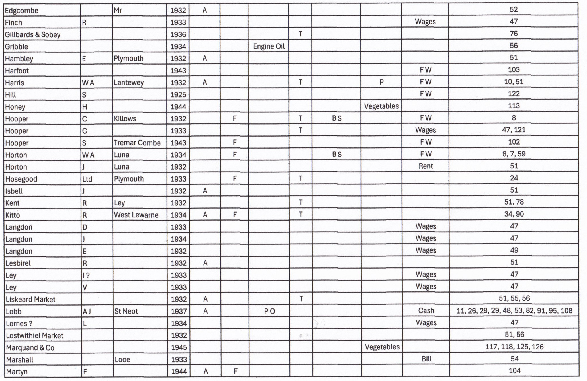 This Olliver Ledger was one of many given to St Neot Archive by Agnes Olliver. Our thanks to Agnes and Jack for retaining these valuable accounts of St Neot life during the second quarter of the 20th century. At the start of the period when mechanisation was being introduced into the farming industry in rural Cornwall.