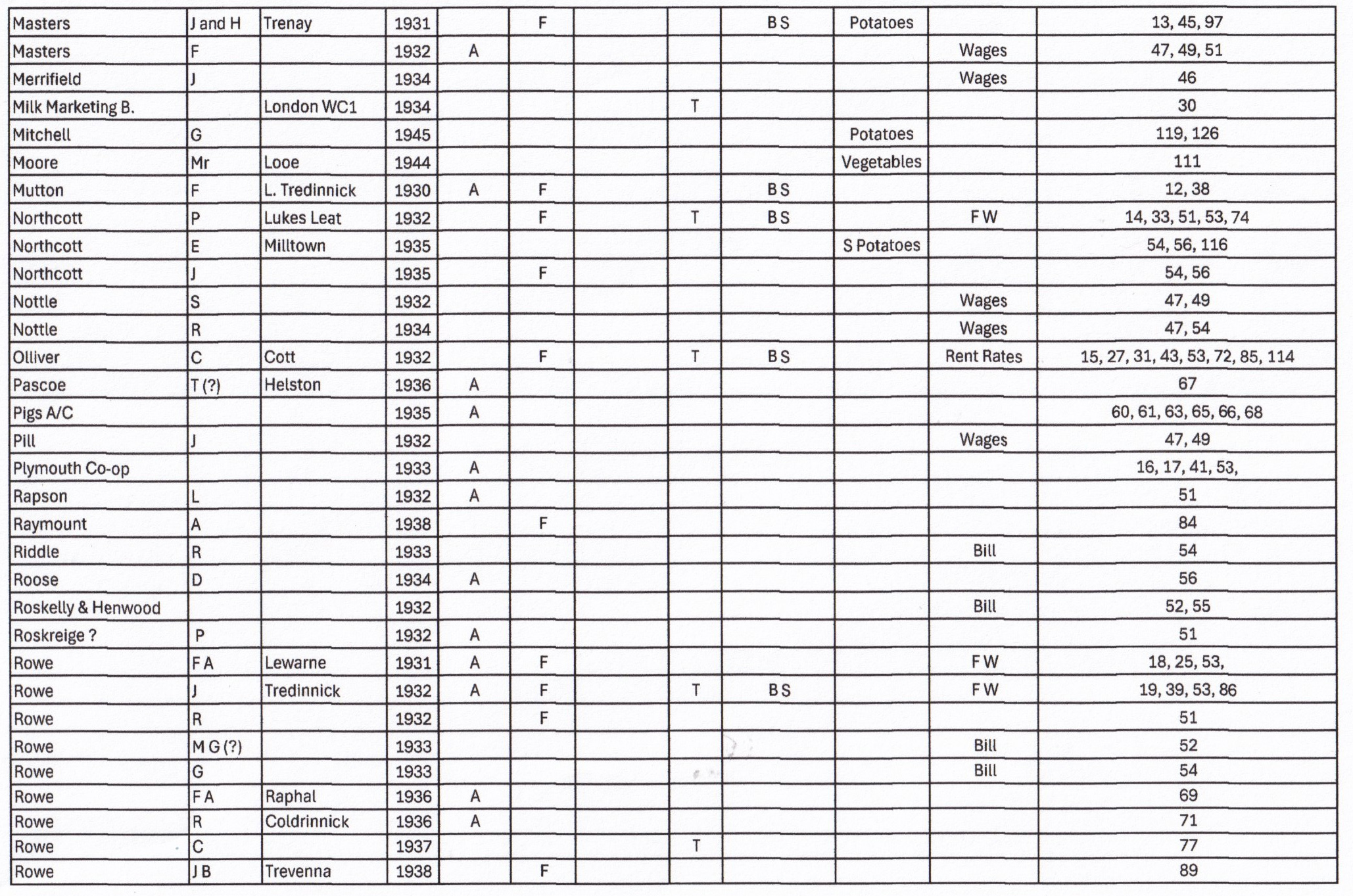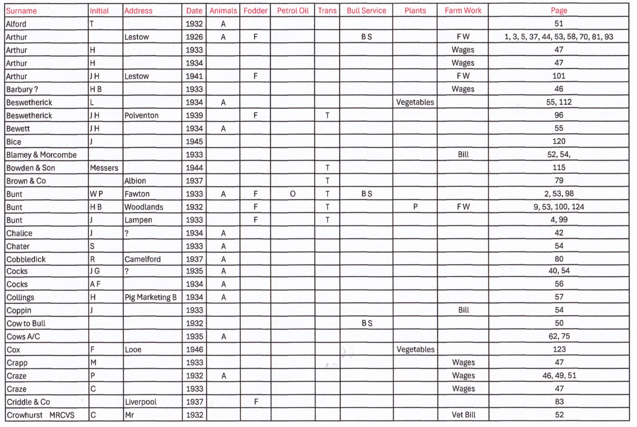 Our thanks also to Clarice Barriball who has spent many hours in the Archive on Thursdays transcribing this and other Ledgers, well done Clarice!