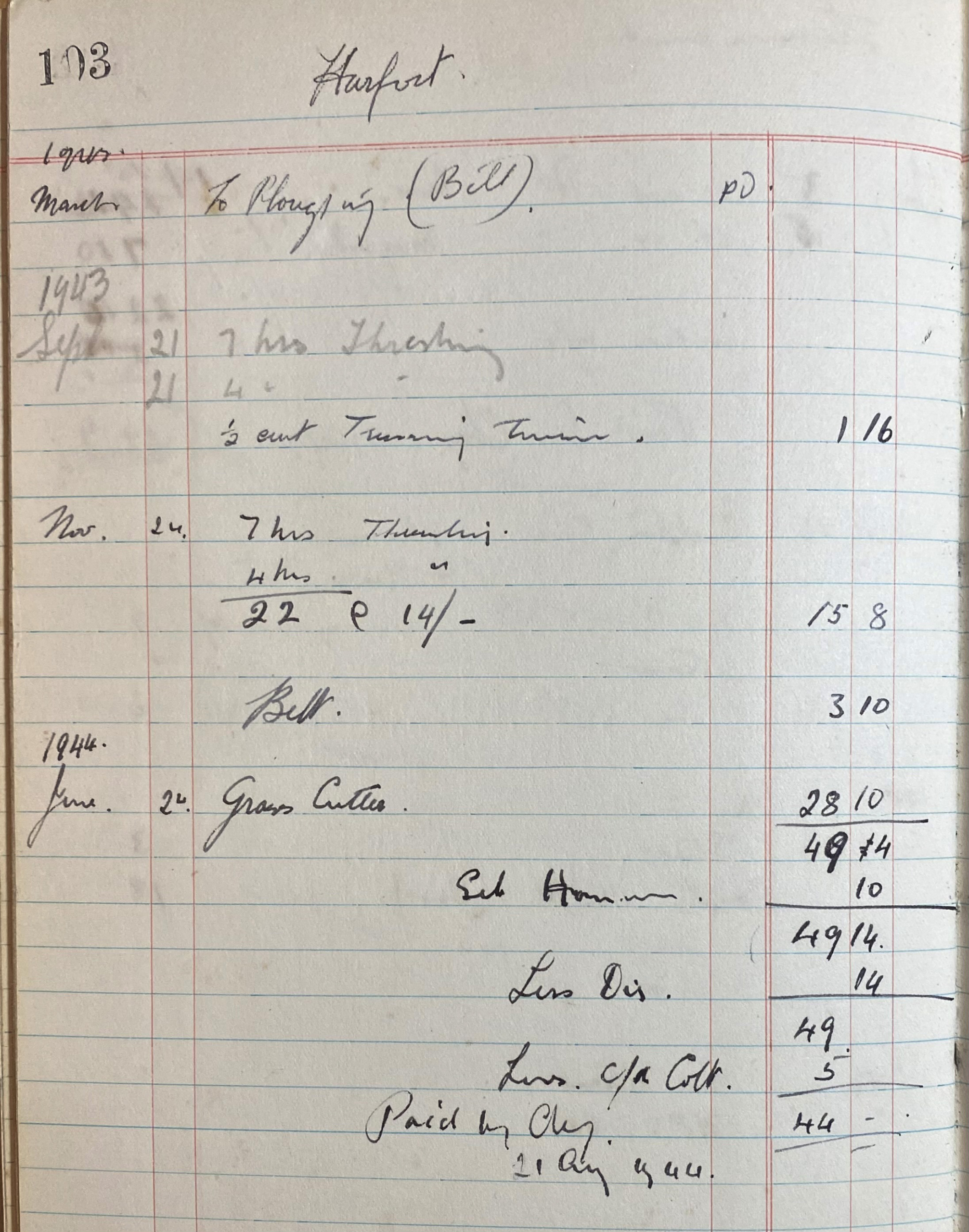 In the “Farm Work” column I have listed the variety of farm work recorded as well as wages paid to named people.