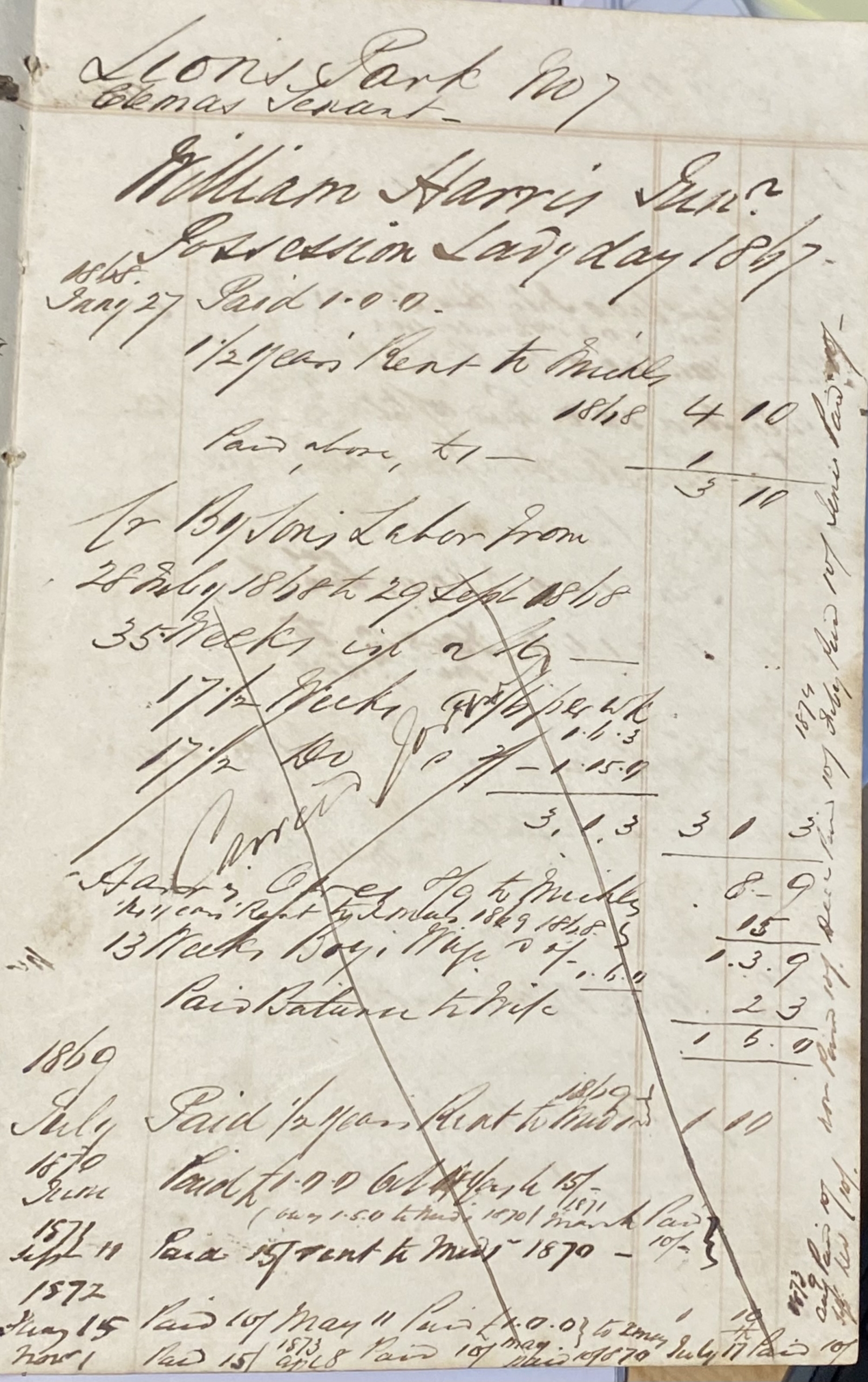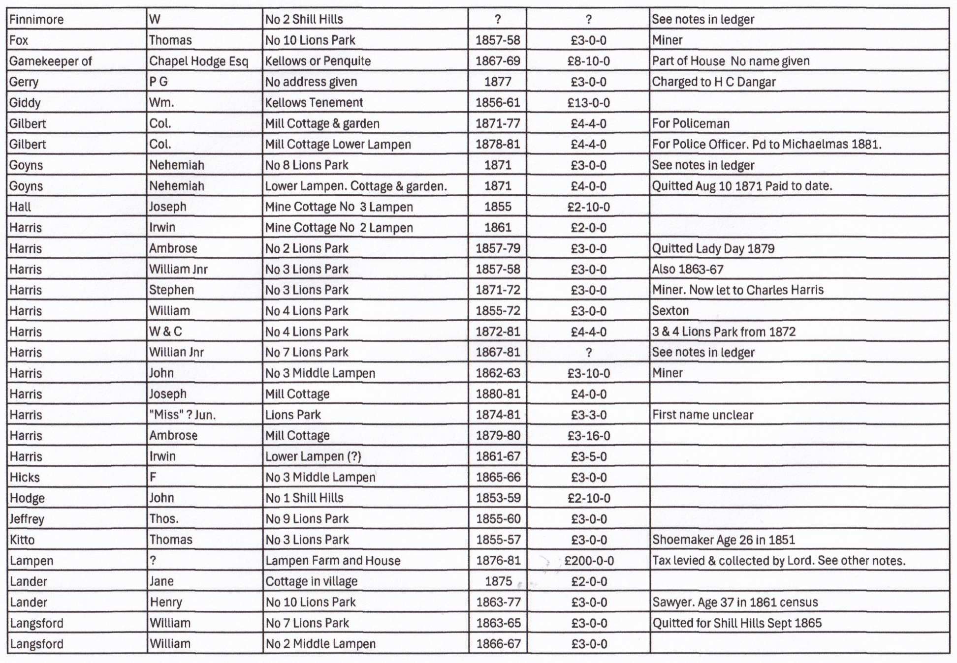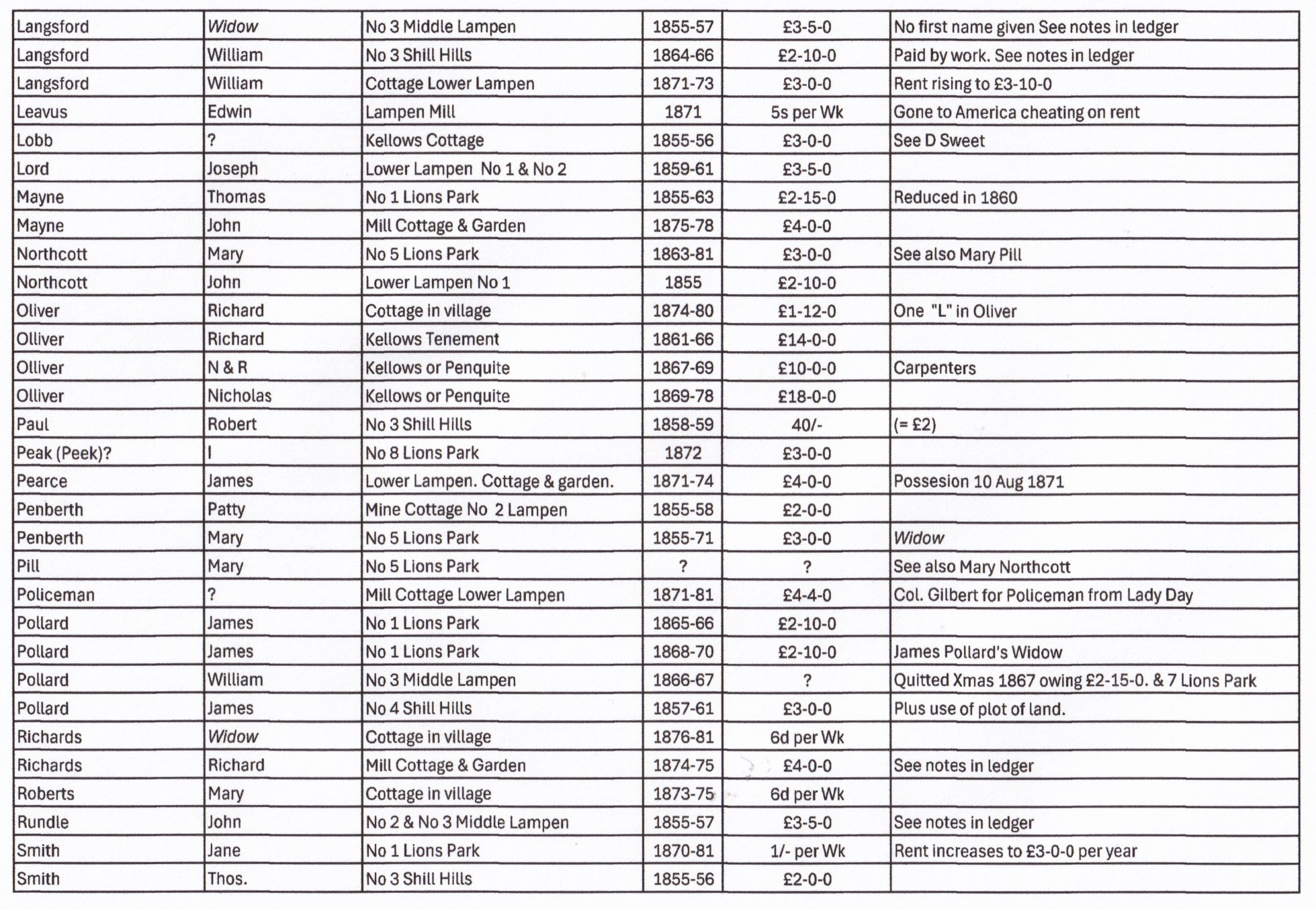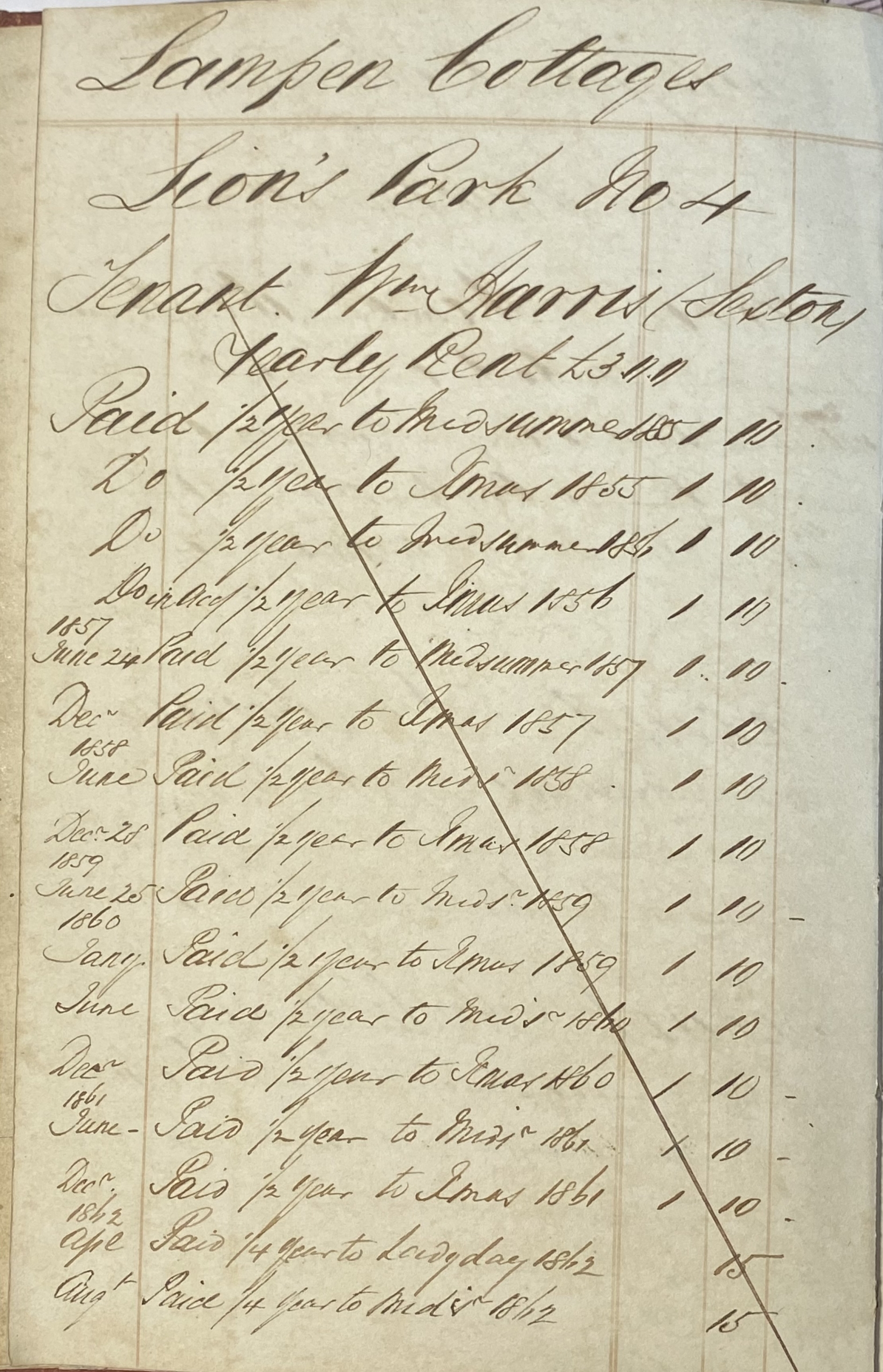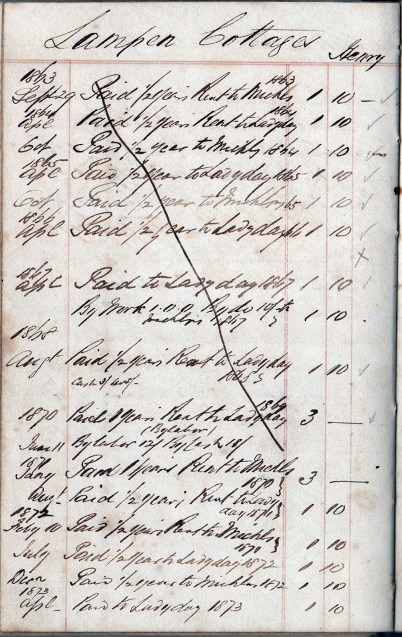 A small account book detailing rent paid, houses occupied and dates when identified people were resident in St Neot. Most entries date from 1855 but there are a couple of earlier ones. There is mention of Miners and Mining Companies. An early record of the Policeman is mentioned.